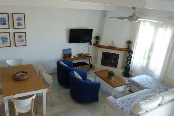 La villa dispose de 3 salles de bains complètes, modernes et en très bon état. Le salon-salle à manger est un espace lumineux et accueillant, avec un accès direct à la terrasse et au balcon, où vous pourrez profiter de moments de détente, de repas en plein air ou de réunions en famille et entre amis.